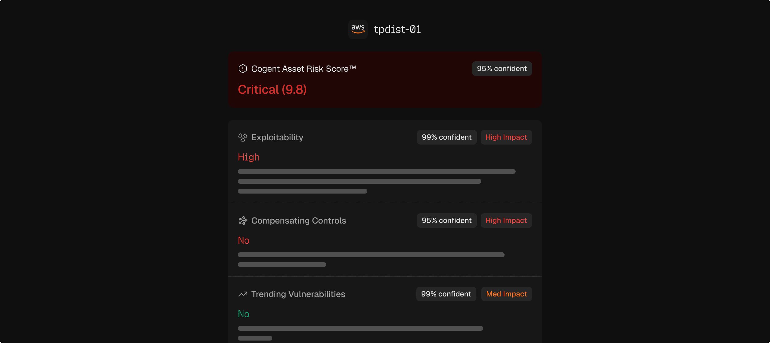 Cogent's AI agents analyze the threat landscape, exploitability in your environment, and business impact to produce risk scores grounded in your environment, not just CVSS severity.